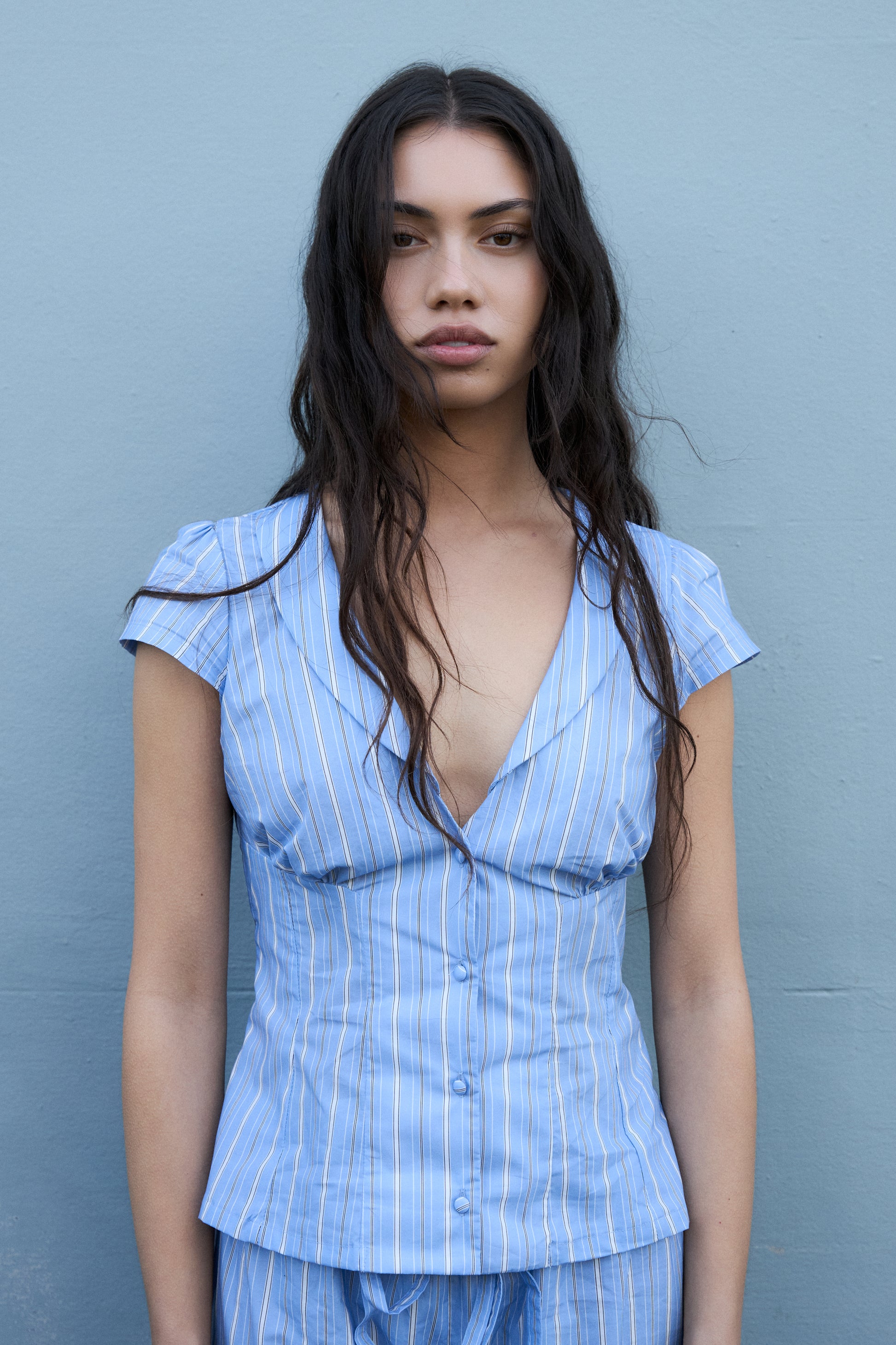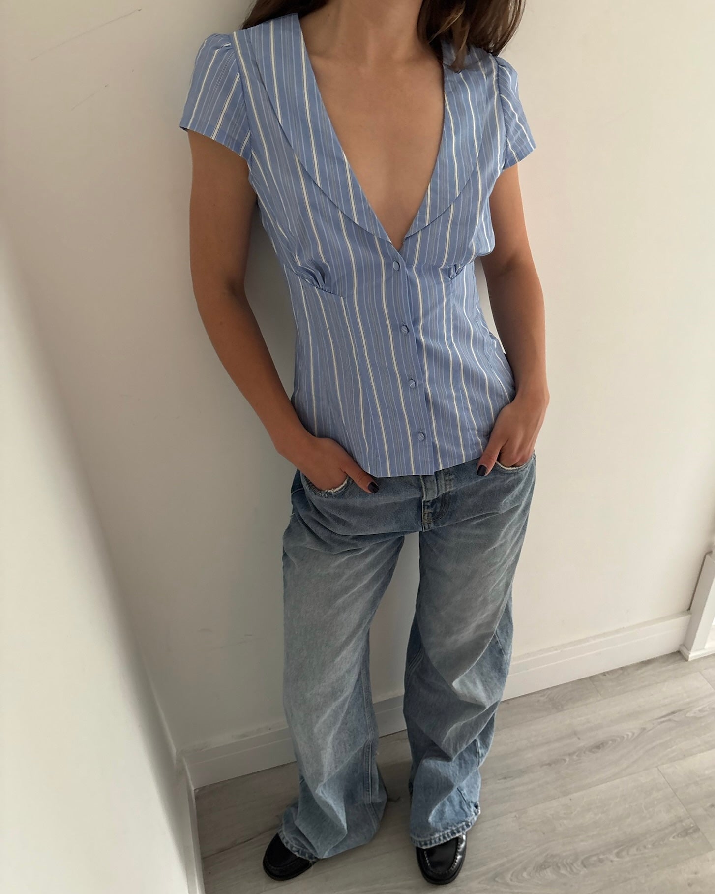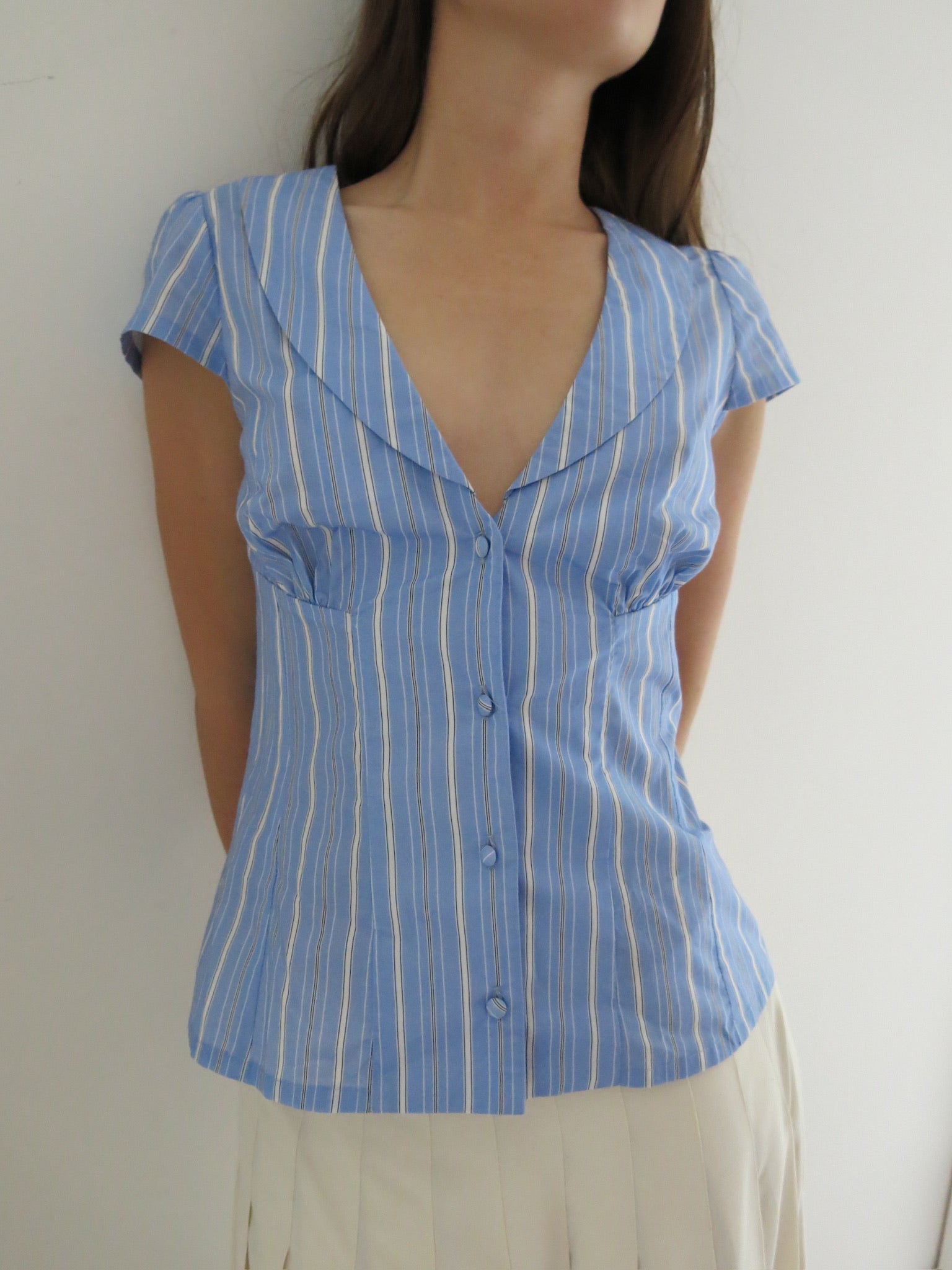 Blue Top Blouse, just like blue top milk. Our capped sleeve blouse is fresh and ready for you.